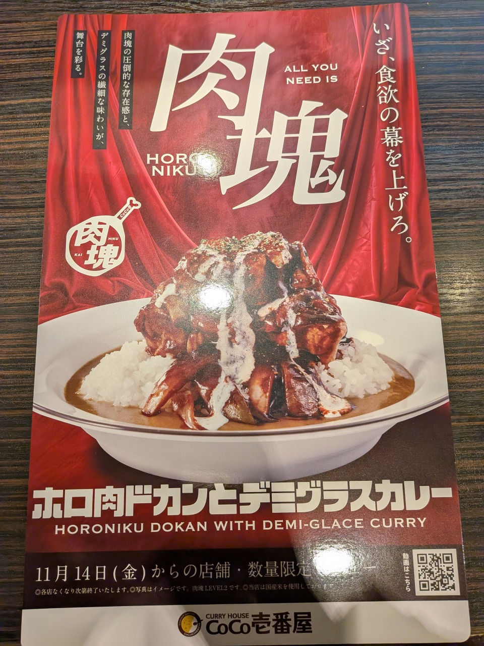 その後、しばしの沈黙を経て、2024年5月には「肉塊トンテキカレー」(これは多忙時期と重なり食べられていません)、2024年11月には「ホロ肉ドカンとBBQカレー」へリニューアルの上、期間限定・店舗限定で提供されました。