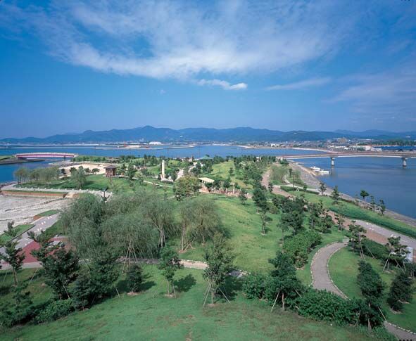 タネ明かしをすると、日本列島公園は緑地帯でミニチュアの日本列島を再現した公園なのだ。日本列島公園のある三河臨海緑地は1994年3月に、当時の宝飯郡御津町と豊橋市に跨がる埋め立て地に整備された、国内でも最大規模の臨海緑地だ。アニメ映画「君の名は。」では新幹線の車窓からここらしき風景が映るシーンがあり、同作品の聖地の一つにもなっていいるようだ。