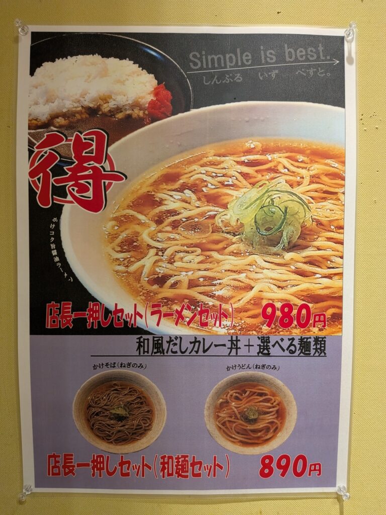 さらに、お得な和風だしカレー丼とラーメン(もしくはかけそば、かけうどん)のセットメニューもあるのですが…写真を見る限り、どちらもまあまあ大きそうです。こういうのって、大概、どちらかがミニサイズだと思うんですよ!