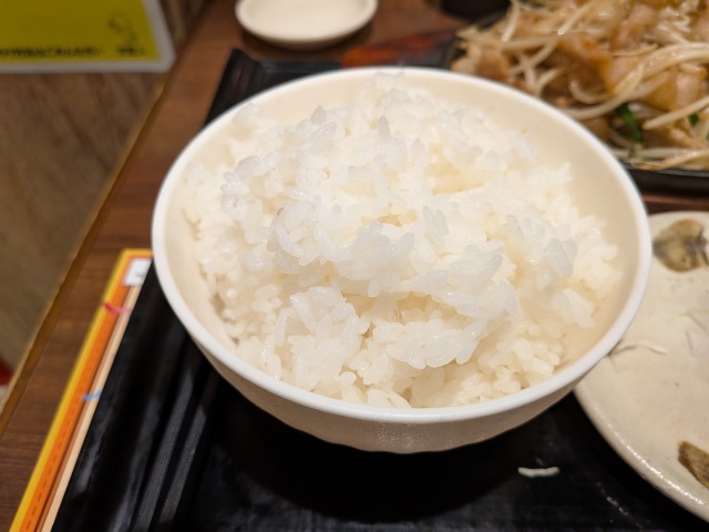 空っぽの茶碗をカウンターに持って行くと、おかわりをよそってもらえます。おかわりの量は大盛と普通を選べます。満タンにチャージされたご飯でもって、豚ニラ鉄板焼をペロリと完食したのでした。