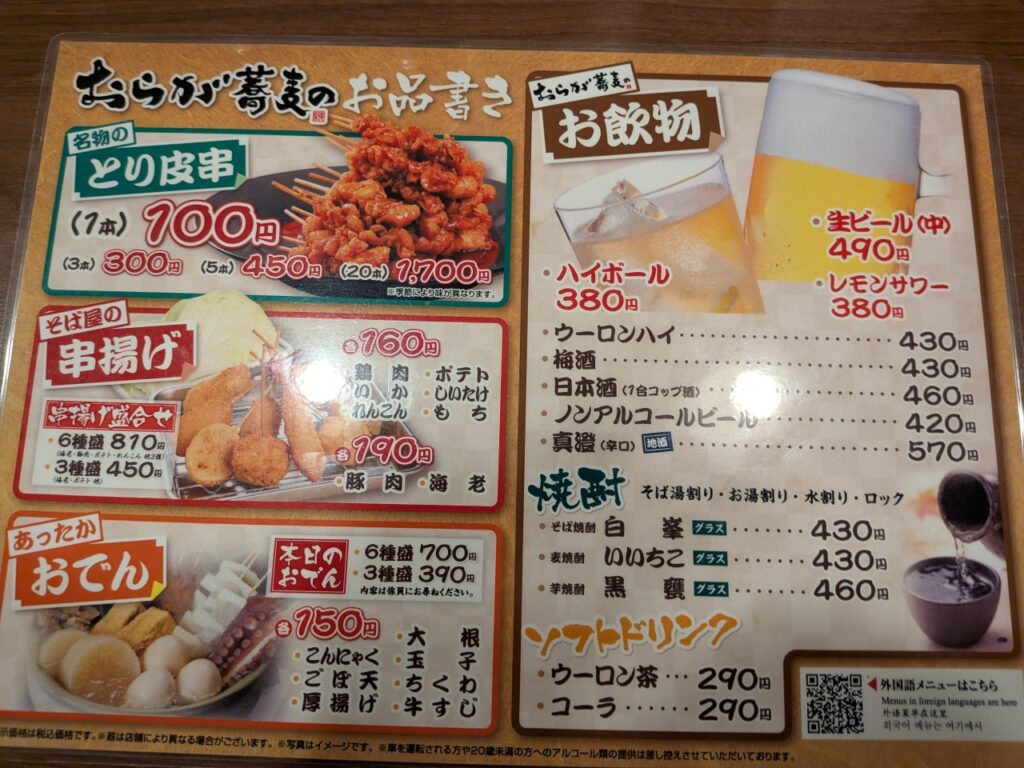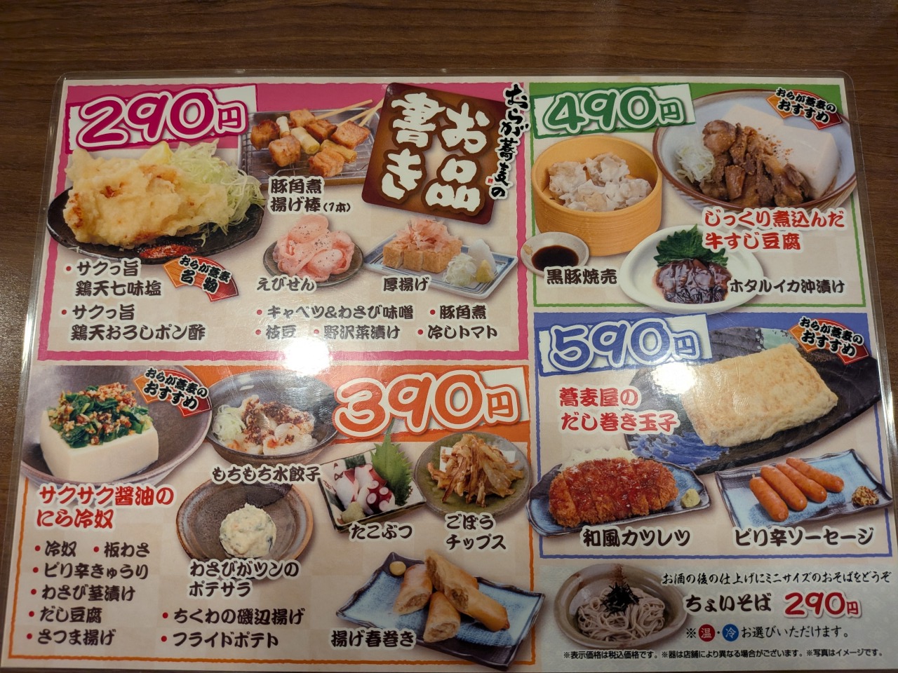 ディナータイムのおらが蕎麦では、チョイ飲みに適した安価な一品料理やお酒のラインナップが一気に増えるのです!