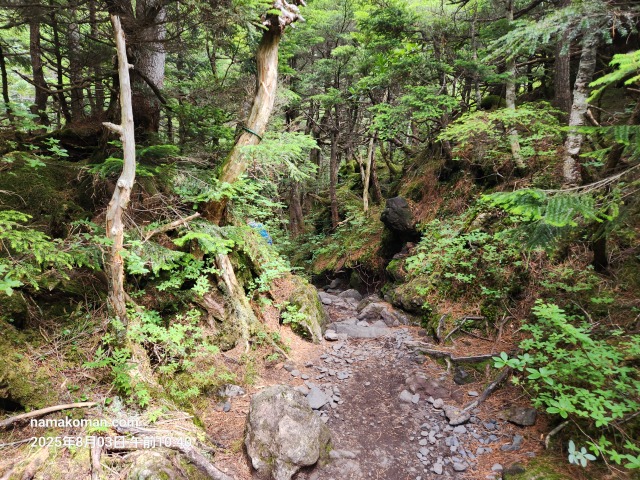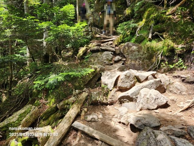 登山道としてしっかりと整備されてはいるのですが、あくまで登山道基準です。坪庭散策路よりもずっと足場がゴツゴツとしているので、当然ながら進むためには登山靴などの着用が必須です。