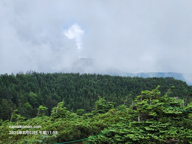 天気が良い日には、北横岳の上から森の中に7つの池がある様子を眺めることができたようですが、訪問時はこの雲だったので残念ながら拝めませんでした。