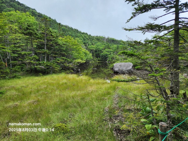 北横岳ヒュッテからは、七つ池という池に伸びる分岐路があります。七つ池という名前の通り、池が7個あるのですが、登山道は2つ目の池までしか続いていません。