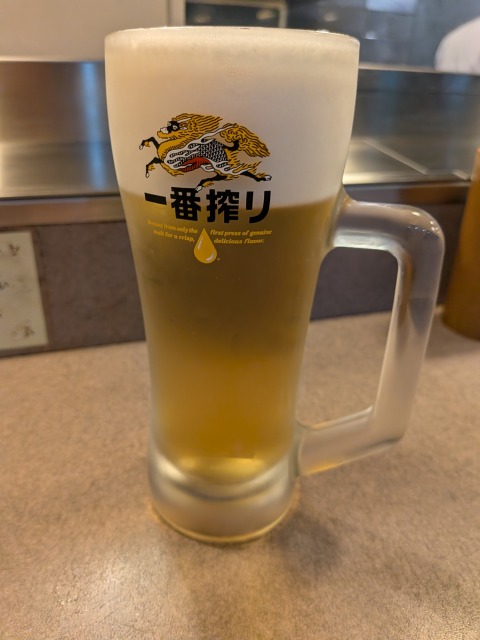 とりあえず、ビールですね。生中を注文しました。最初の一口が爽やかに喉を潤していきます。
