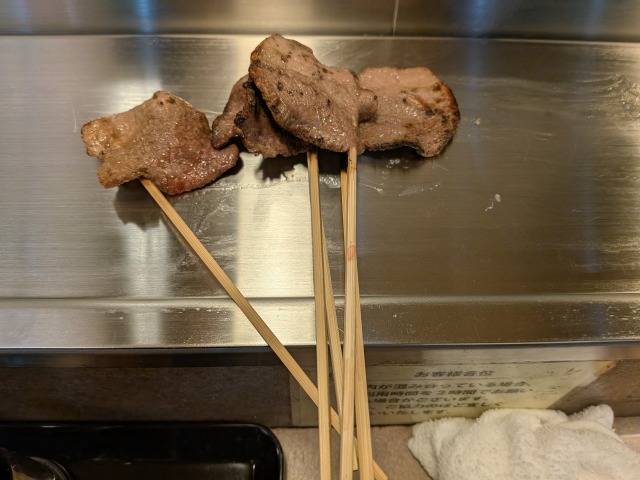 待つことしばし。ようやく、最初の串焼き「牛タン」がやってきました。