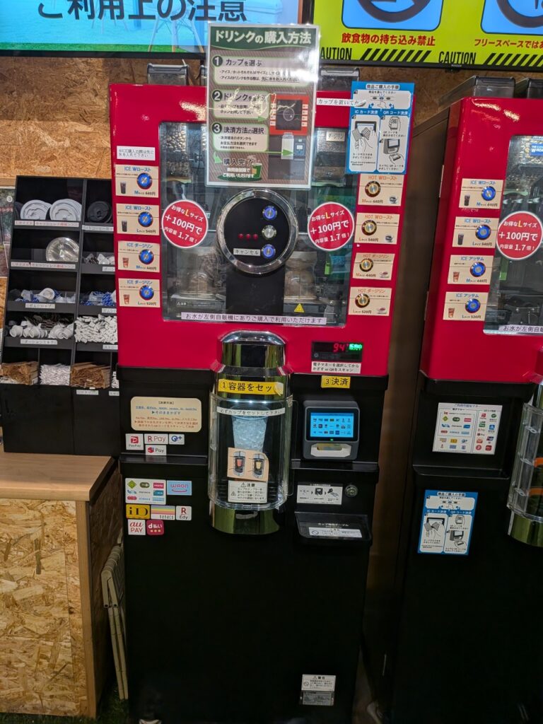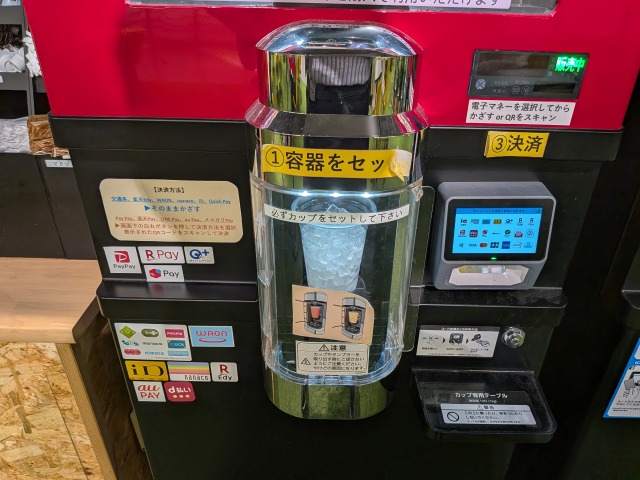 前述の通り、決済手段はキャッシュレスのみです。カップをセットし、目的のドリンクのボタンを押してから、任意の手段で決済しましょう。