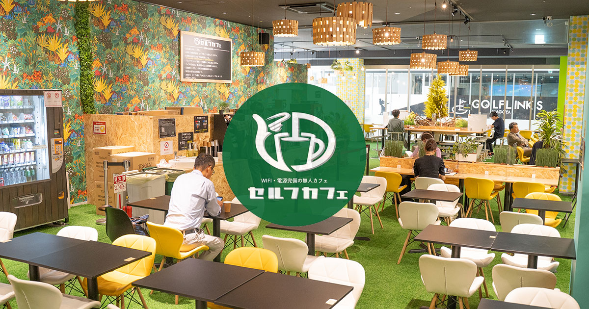 セルフカフェは、ウッドデザインパーク株式会社が愛知県内を中心に、北は岩手県から西は大阪府まで展開している無人のカフェです。「セルフカフェ」の名前の通り、飲み物の提供はセルフサービスで、店内の自動販売機にて購入するシステムなのですが、この施設の本質は、ドリンク料金だけで、電源やWi-Fi環境の整った作業スペースを時間無制限で利用できる点です。ドリンクは1杯420円からあり、これは名駅周辺のネットカフェを基準にすると、1時間以上の滞在ならセルフカフェのほうが断然お得ということになります。
