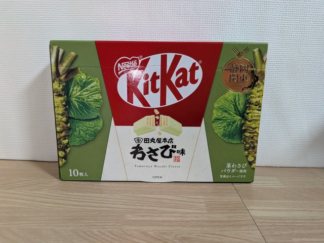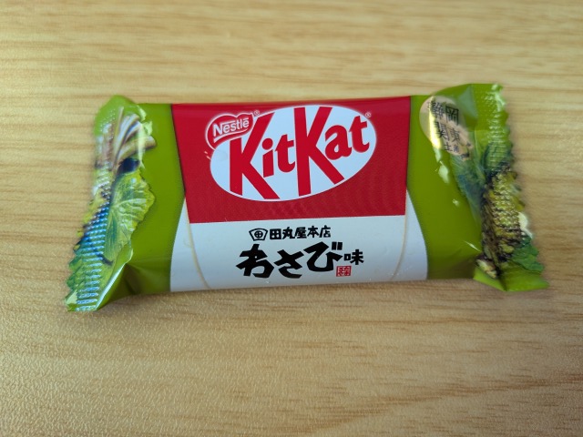 職場へのお土産に「キットカット 田丸屋本店わさび味」も購入しました。わさび漬けの田丸屋本店とのコラボ商品で、静岡および関東地方限定のご当地キットカットです。