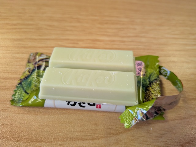 わさびにチョコレートという組み合わせはとても不思議でしたが、実際に食べてみると主役はチョコレートでした。一般的なミルクチョコのキットカットの味ですが、背後に程よく、心地良く、わさびの風味が広がります。辛味はありません。「わさび味」であることを放棄せず、ここまでしっかりと美味しいチョコレート菓子として仕上げてきたことがすごかったです。