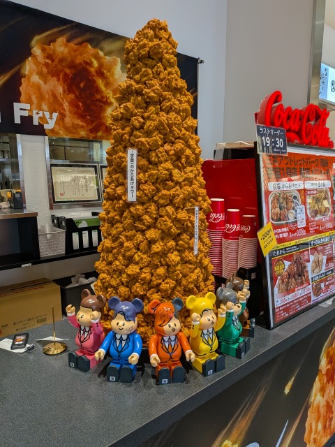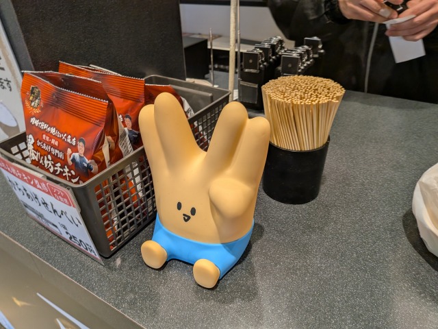 暴れん坊チキンは、からあげグランプリでの受賞歴もある地域の人気店ですが、岡崎市を拠点に活動するYouTuber・東海オンエアの動画にもしばしば登場し、東海オンエアのファンにも「聖地」として親しまれています。宇宙1号店のカウンターにも、東海オンエアメンバーを模したベアブリックと、チャンネルのマスコットキャラクター「ピースの二乗のアイツ」が展示されています。