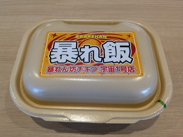 宇宙1号店限定の弁当「暴れ飯」を注文しました。無料で大盛にできるほか、部位をもも肉と胸肉から選べます。(今回は普通盛り、もも肉)
