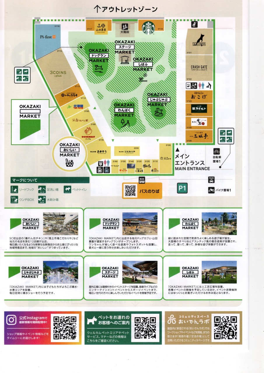 三井アウトレットパーク岡崎は、「オカザキマーケット」と「アウトレットゾーン」の2つのエリアに分かれています。