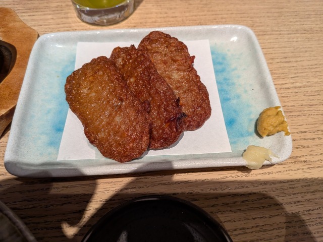 トビウオといえば「あごだし」ですが、そのイメージに違わず、かなり濃い旨味が詰まっています。さらに言うと、肉もみっちりと締まっています。そういえば、宮城の「廻鮮寿司 塩釜港」で頂いたトビウオも筋肉質でしたね。小さなボディの中に、決して侮ることのできない美味しさが詰まっていました。