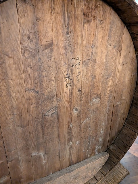 そして、この木桶はとても大きいです。「六尺桶」とも呼ばれ、その直径は六尺、すなわち約1.8mです。僕が寝そべることのできてしまうサイズです。