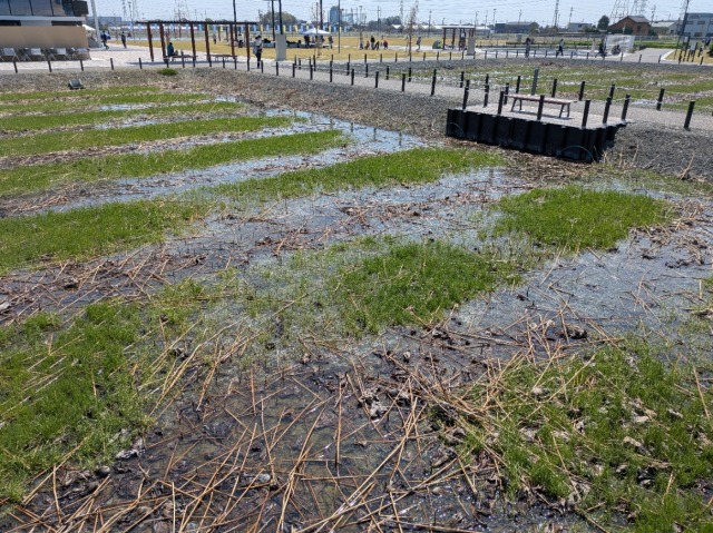 東ゾーンが整備された場所には元々、ハスの花を楽しめるフォトスポット「森川花はす田」があったのですが、現在は公園の一部として再整備されています。4月は一般的にハスを植え付ける時期らしく、訪問時点ではまだ何もありませんでした。ハスの花のシーズンである、6~9月に期待したいところです。きっと素晴らしい映えスポットとなってくれることでしょう。