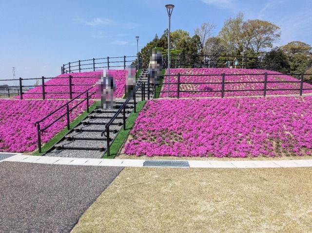 ハスの花のシーズン前は、代わりに「はす見の丘」を芝桜が彩ります。