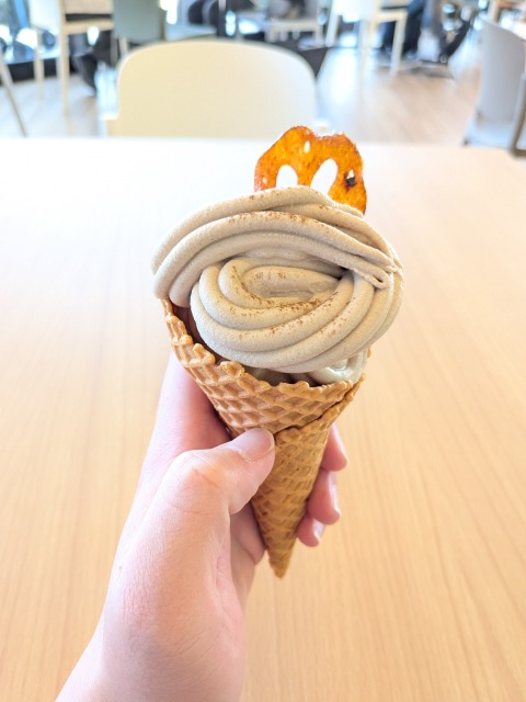 ご当地の変わり種ソフトクリームはぜひとも味わっておきたいです。「焼きれんこんソフト」を頂きました。カップとコーンを選べます。